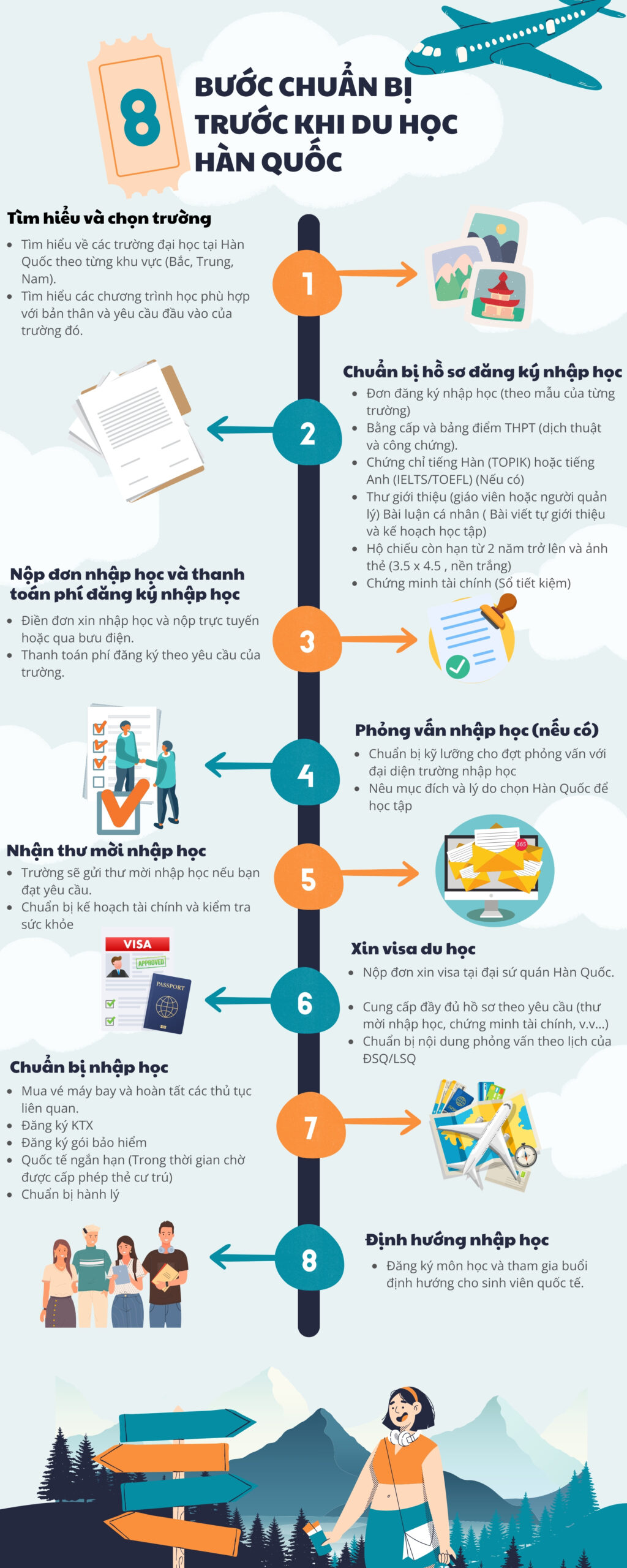 Bạn đang chuẩn bị cho hành trình du học Hàn Quốc nhưng chưa biết bắt đầu từ đâu? Hãy để Infographic chi tiết này giúp bạn hiểu rõ từng bước trong quy trình nộp hồ sơ một cách dễ dàng và nhanh chóng!
